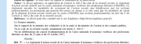 Le nouveau règlement d’action sociale élaboré par le Conseil d’administration de la CNAVPL vient d’être approuvé par le Décret n° 2017-1865 du 29 décembre 2017.